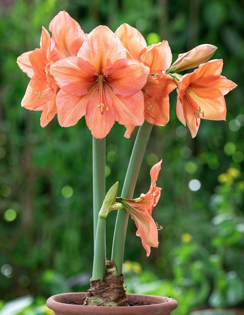 Рилона – изысканно цветущее комнатное луковичное растение высотой 50см с листьями изящной вытянутой формы. На цветоносе развивается 5-6 лососевых цветков диаметром до 25см. Зацветает амариллис через месяц-полтора после посадки