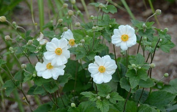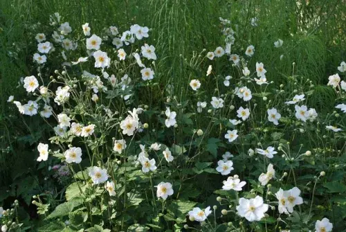 Анемона (Ветреница) японская Онорин Джоберт. Знаменитый белоснежный сорт анемоны, созданный французским селекционером в 1858 году и названный в честь его дочери – M. Jobert. Растение достигает в высоту 90-120 см.