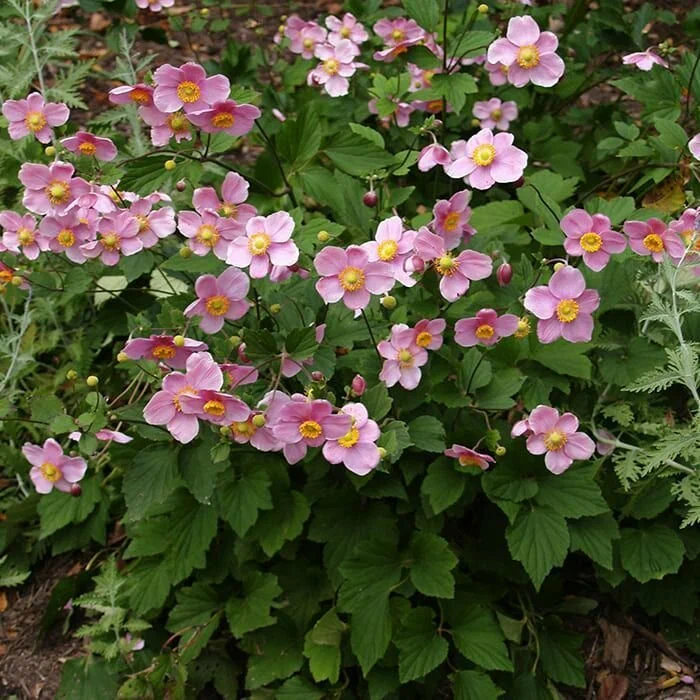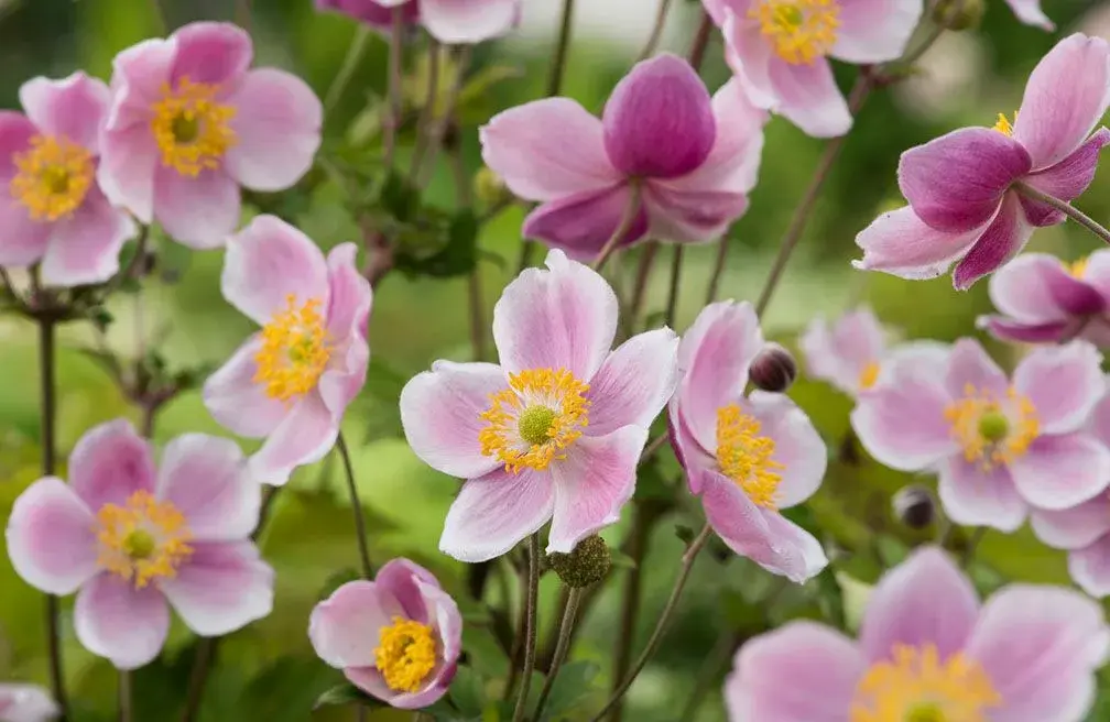 Цветет анемона в августе-сентябре. Нежные цветки на высоких проволочных стеблях изящно колышутся над темно-зеленой листвой, танцуя и покачиваясь на ветру. Цветет анемона как раз в то время, когда большинство многолетников уже ушли в покой.