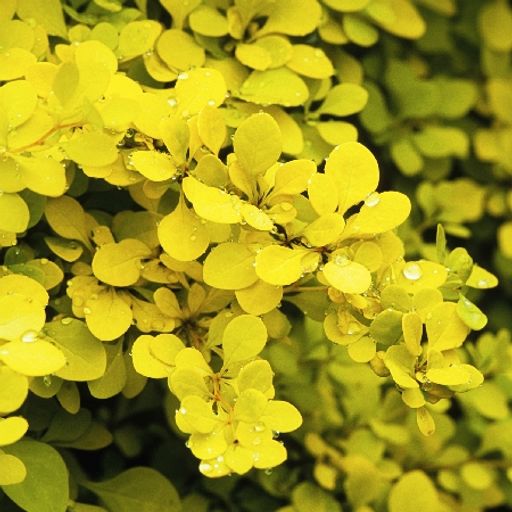 - Листья: ярко-золотистый или светло-жёлтый оттенок, форма — мелкая, овальная или обратнояйцевидная, с заострёнными кончиками. Осенняя окраска листвы может варьироваться от оранжевой до красной.