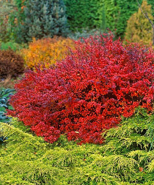 Berberis thunbergii Darts Red Lady) — декоративный раскидистый кустарник с уникальной сменой окраски листвы в течение сезона. Относится к среднерослым сортам.