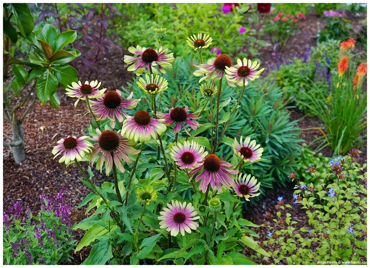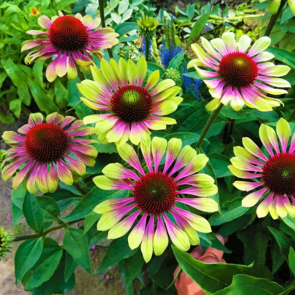 Эхинацея пурпурная Грин Твистер – многолетнее травянистое корневищное растение. Высота 90-100см. Внешний край лепестков жёлто-зелёный, переходящий к центру в бледный сиренево-розовый цвет. Окраска меняется от цветка к цветку. Цветки — крупные корзинки диаметром до 7-15 см, со слегка свисающими «лепестками» и с колючей трубчатой остроконечной серединой.