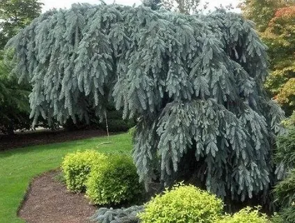 Ель колючая Глаука Пендула. Красивая голубая ель, голубая окраска хвои сохраняется в течение всего года при посадке на солнечном месте. Крона плакучая. В среднем высота растения не превышает 3 м. Хвоя жесткая, плотная, голубая, расположена радиально. Рекомендуется для одиночных посадок, для любителей экзотических растений. Применяется в качестве акцентного растения в группах.