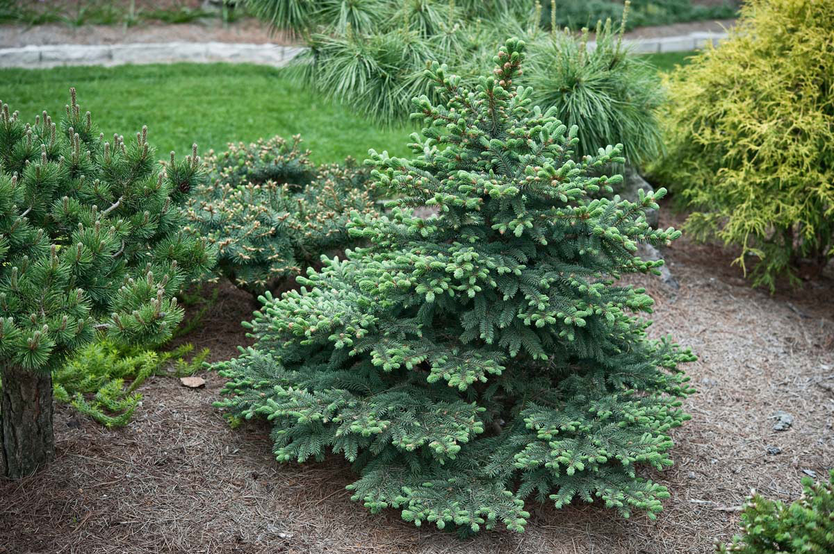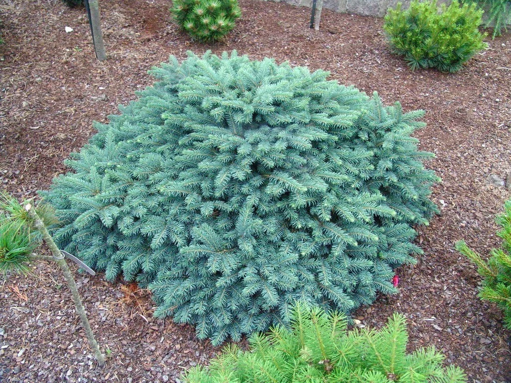 Медленный рост. Яркая голубизна хвои и плоская подушкообразная форма кроны.