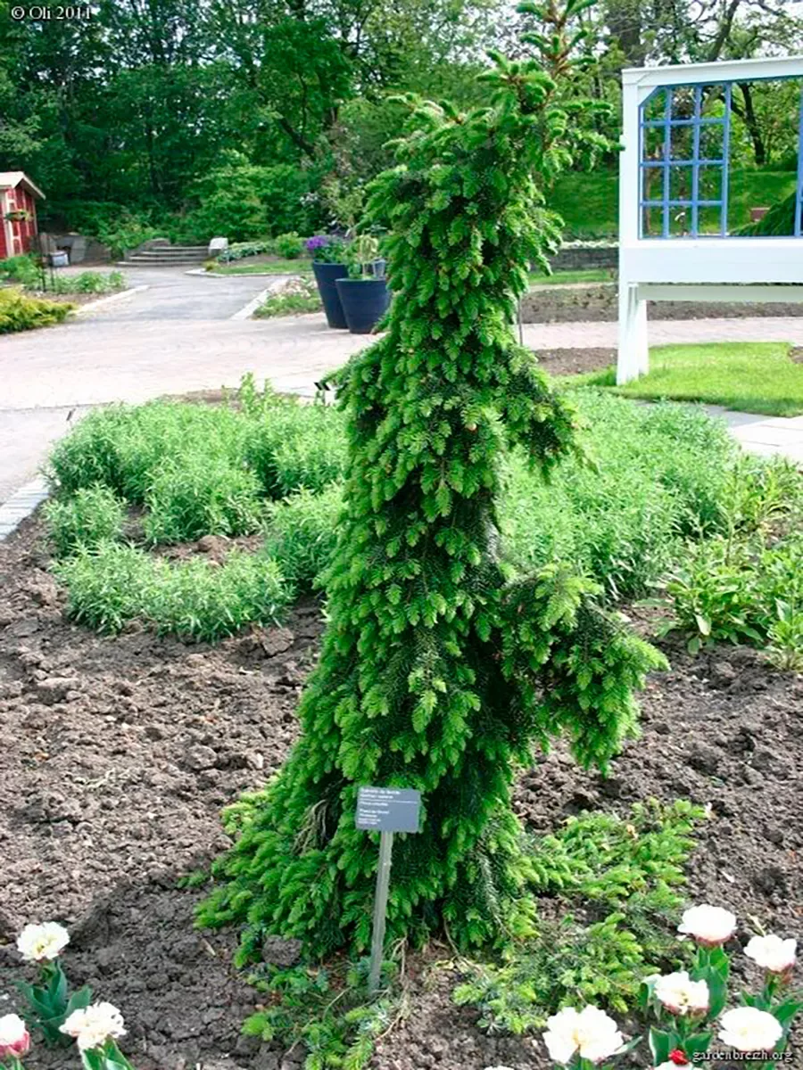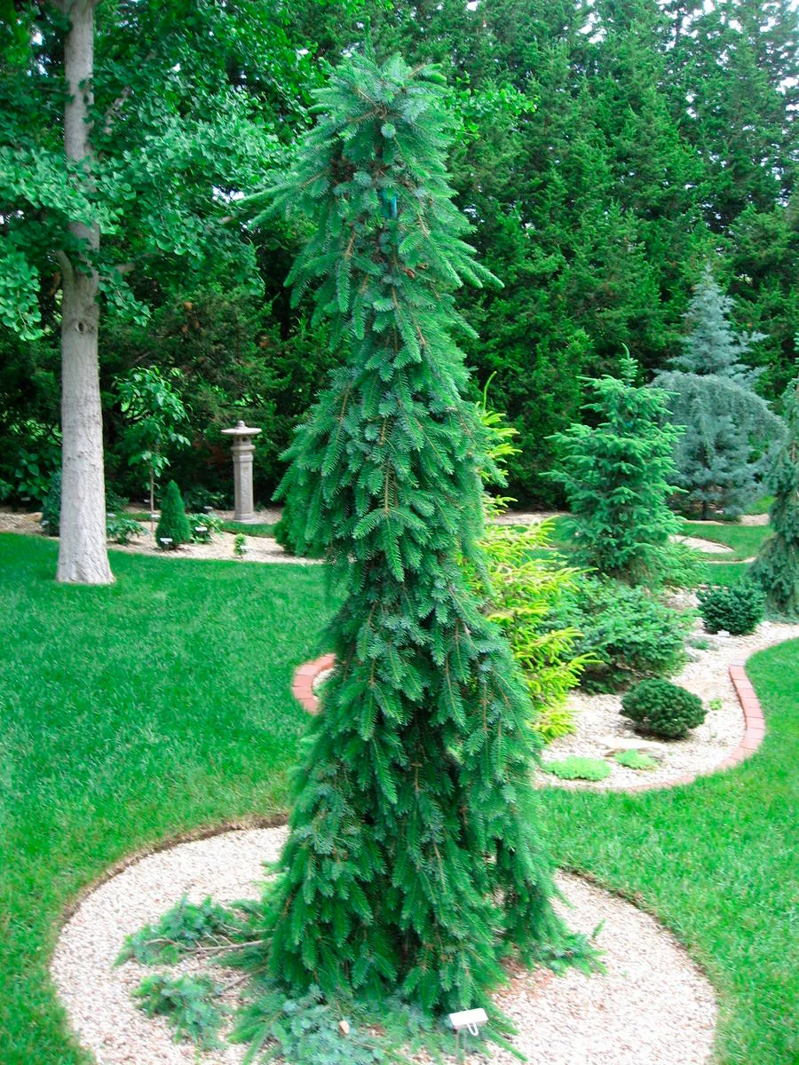- Крона: узкая, с причудливо-изогнутыми, горизонтально-свисающими ветвями.