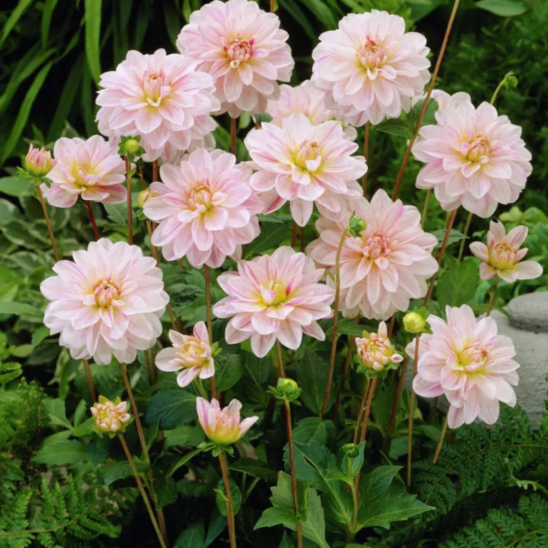 Георгина Бонеста декоративная Крупные нежно-розовые бутоны с сиреневыми штрихами и крапом, по форме напоминают королевские лотосы. Георгина порадует Вас долгим обильным цветением с июня по октябрь. Диаметр цветка при роспуске 10-15 см. Высота растения: 100 см.