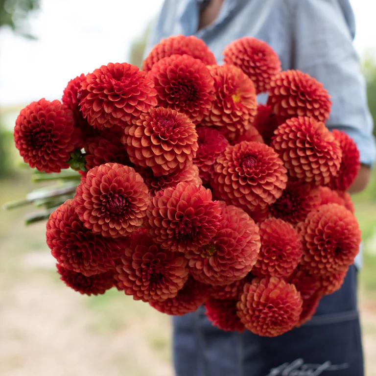 Шаровидный георгин "Браун Шуга" вырастает до 120 см. Размер цветка 5-10 см., цвет красный с коричневым или оранжевым оттенком. Цветение продолжительное, с июля до наступления первых осенних заморозков. Этот сорт бесподобен как в клумбе так и в букете. Яркий-уверенный-выразительный.