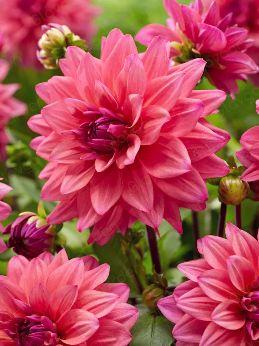 Георгина «Фелин Ивонн» — украшение садов, известное своим уникальным и эффектным внешним видом. Этот сорт отличается крупными, насыщенно-розовымо-пурпурными цветками со сливовой серединкой, создающей потрясающий визуальный контраст. Элегантно изогнутые лепестки придают цветку динамичную текстуру и ,кажется, даже переливаются на солнце.