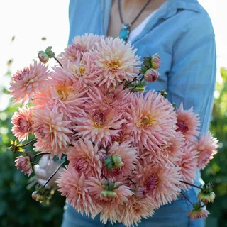 Игольчатая форма цветка, нежного лососево-розового цвета. Диаметр цветка 14 см, высота 120-150 см. Великолепный срезочный сорт! Шедевр в саду, особенно в лучах закатного солнца
