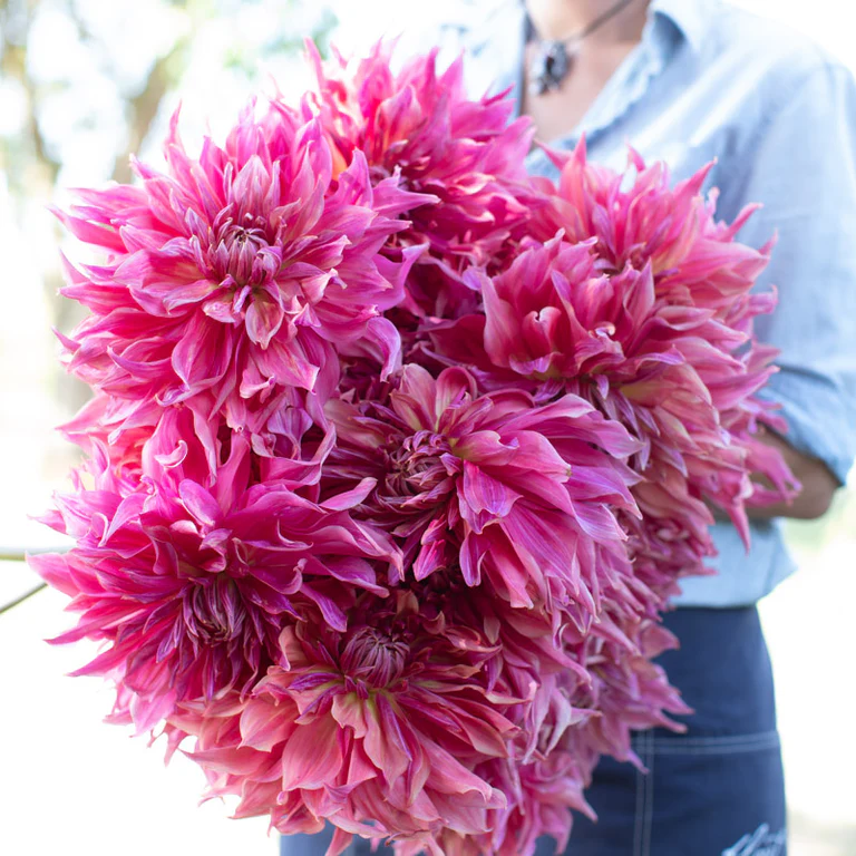 Георгина декоративная макси Пенхилл Дарк Монарх Dahlia decorative maxi Penhill Dark Monarch крупноцветковый сорт. Высокие прочные стебли украшают махровые цветы, поистине гигантского диаметра. Широкие лепестки заостряются на концах. Цветки темно-розовые с сиреневым отливом. Является великолепным украшением любого сада. Цветение продолжительное с июля по сентябрь. Для более обильного цветения удаляют боковые бутоны. Идеально подходит для посадки как в одиночных, так и в групповых композициях.