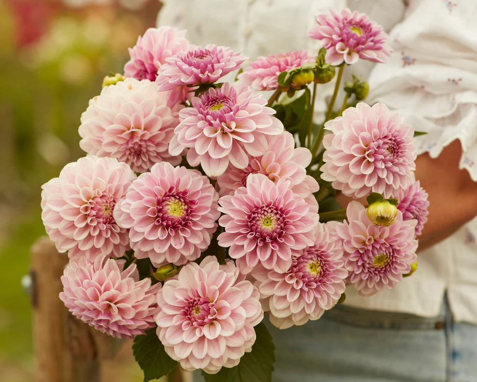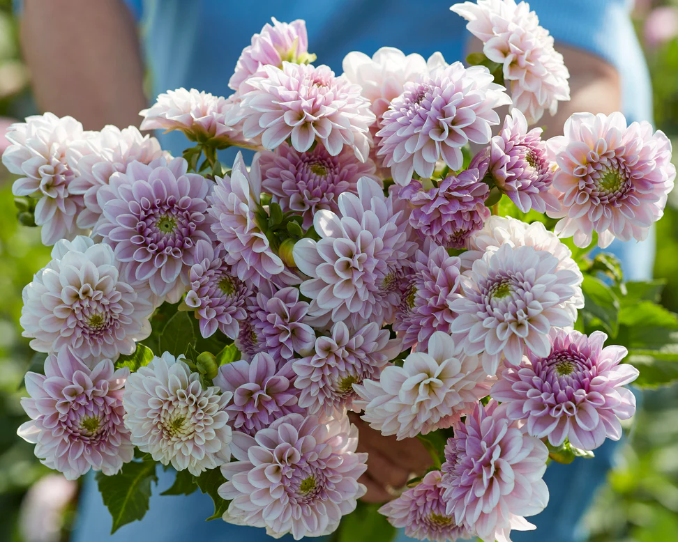 Если вы ищете изысканность и элегантность в своих бордюрах и контейнерах, тогда обратите внимание на Георгины "Розовый шелк". Этот чрезвычайно грациозный георгин просто излучает класс, а нежный цвет придаст безмятежности вашему саду. Вырастая примерно до 80 см в высоту, он относительно компактен для георгина, и это делает его отличным выбором для контейнерного садоводства. Он также прекрасно смотрится в бордюрах и помогает создать градиентную композицию из более низких растений спереди и более высоких георгинов сзади. Георгин «Розовый шёлк» отличается обильным цветением, поэтому ожидайте, что он украсит вашу клумбу. На летнем солнце этот нежный георгин сияет и может казаться почти белым, но ближе к вечеру, когда свет становится немного тусклее, нежный розовый оттенок становится более заметным.