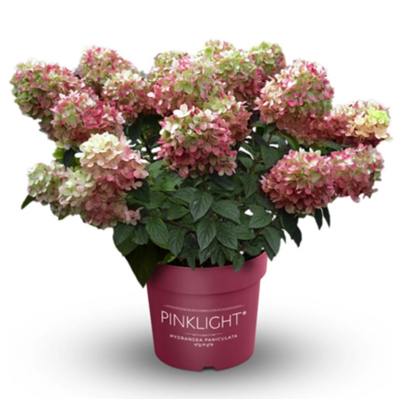Гортензия Пинклайт входит в сортосерию Гарденлайт, и представляет компактную гортензию с пышными цветками. Цветки появляются лаймово - кремового цвета, который постепенно окрашивается в розовый в течение сезона. К осени розовый цвет становится интенсивнее. Гортензия невероятно обильно цветет мелкими цветками в соцветиях размером 15-20 см. Период цветения начинается с июля и продолжается до поздней осени. Куст компактный, легко растет, хорошо разветвляется и имеет темно-зеленые листья, которые хорошо контрастируют с розовыми цветами. Взрослые растения достигают в высоту около 100 см, ширину 80 см. Поскольку гортензия Гарденлайт Пинклайт остается компактной, она идеально подходит, для использования на клумбе. на террасе и при выращивания в контейнере.