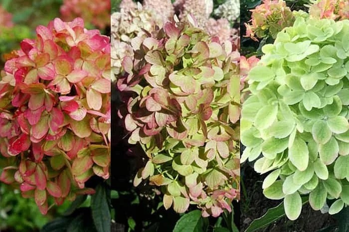 Цветки гортензии собираются в конусообразные соцветия, которые, в свою очередь, сидят на верхушках побегов. Длина соцветий равняется 25-30 сантиметрам, причем больший показатель удается получить, обеспечив растение правильными обрезкой и уходом. Их оттенок изначально является светло-зеленым, дополненным белоснежным верхушками, но к концу лета лепестки розовеют и покрываются прожилками белого и зеленого цветов. Иногда за сезон цветочки успевают сменить свой окрас с лаймового на белый, и с белоснежного на ярко-розовый с оранжевой серединкой. Цветки гортензии Граффити диаметром в 1,5 сантиметра являются исключительно плодоносными.