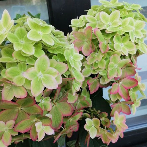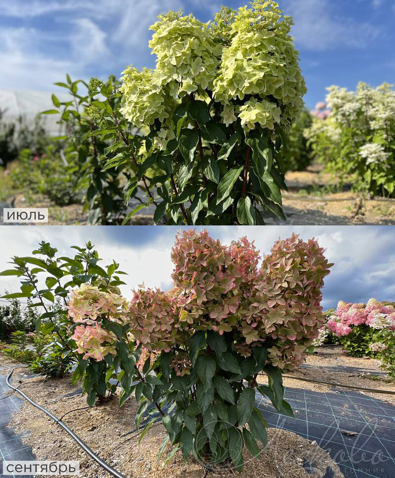 Гортензия метельчатая Металлика - листопадный кустарник с крепкими стеблями и с очень крупными соцветиями и поразительными цветами (пирамидальными цветочными метёлками до 40 см), замечательная новинка от Жана Рено . В начале цветения они лаймово-белого цвета, постепенно розовеют, начиная с кончиков лепестков, вначале образуется розовая кайма, затеи заполняется вся поверхность лепестков. Но главная особенность сорта - металлический отблеск лепестков. Такого вы не увидите больше ни у одной гортензии! Растение достигает высоты 1,5 м, с шириной куста около 1 м. Цветет с июля до сентября, любит регулярный полив. Место для посадки лучше выбрать на солнечном участке или в легкой полутени, на питательной, увлажненной, хорошо дренированной почве со слабокислой реакцией. На участке она найдет свое место как в моно посадке на фоне газона, так и в составе группы, например с хвойными растениями. Любит обильный полив. На участке она найдет свое место как в моно посадке на фоне газона, так и в составе группы, например с хвойными растениями. Зимостойкость хорошая, но недостаточная для регионов с продолжительными периодами морозов ниже -29 С, где, соответственно, рекомендуется укрытие на зиму.