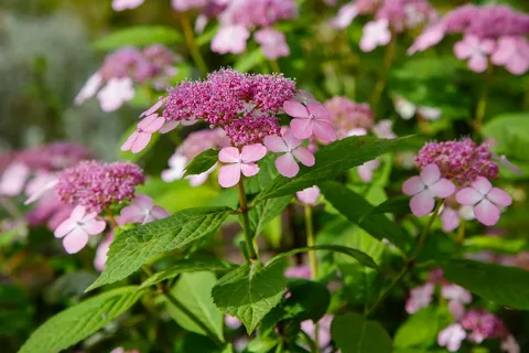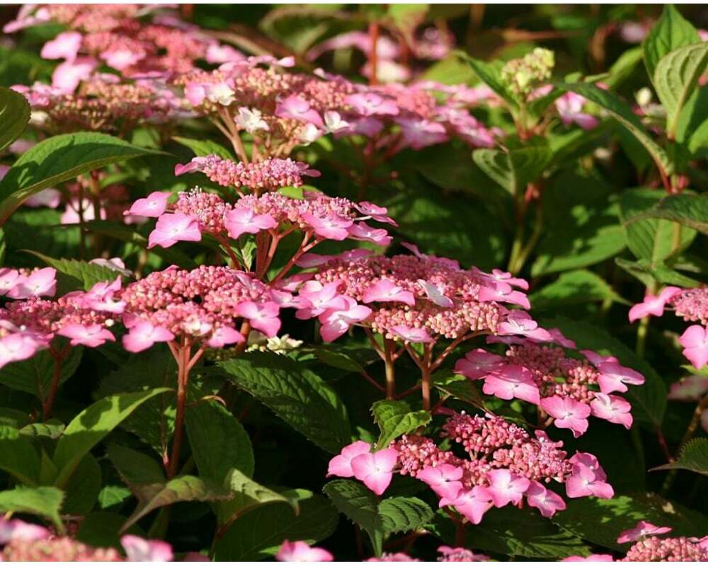 Гортензия пильчатая Авелроз - красивый куст, высотой 1 м и диаметром около 0,8 м. Соцветия плоские, слегка зонтиковидной формы, диаметром до 10 см. Окраска цветка сначала бледно-розовая, затем более темная, к окончанию цветения красно-малиновая. На кислой почве цветки становятся синими. Молодой лист фиолетовый, затем зеленеет, осенью становятся пурпурным. Для посадки гортензии при выращивании в южных регионах предпочтительнее выбирать полутенистое место, в средней полосе и на севере России - хорошо освещенные или слегка притененные участки. Молодые растения рекомендуется защищать от полуденного солнца и ветра. Гортензии очень влаголюбивы, поэтому посадка вблизи деревьев, поглощающих много влаги, для них не подходит. Почва должна быть в меру влажная, от кислых до нейтральных. Не переносит извести в почве. Гортензии предпочитают богатые питательными веществами. Зимостойкость до -23°C, требует укрытия на зиму.