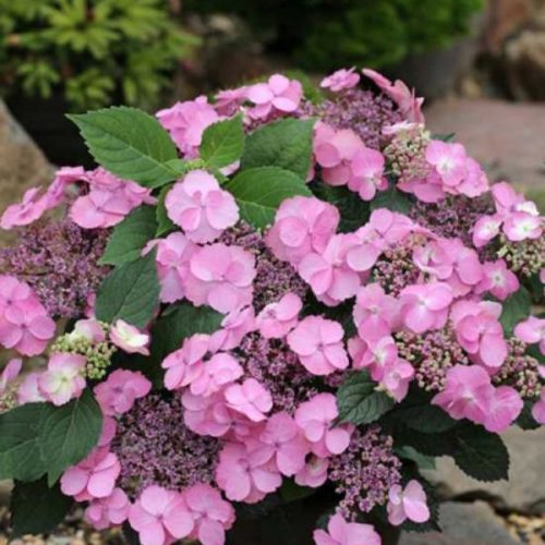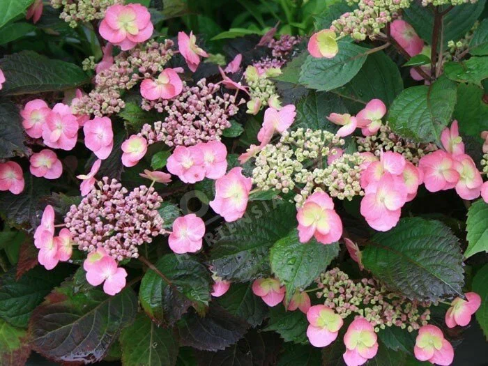 ибрид гортензии крупнолистной и гортензии пильчатой. Очень ценный сорт из серии «Flair & Flavours». Куст компактный, высотой 80-120 см. Побеги сильно разветвлённые. Стерильные цветки полумахровые, розово-красные, в центре жёлтые. Цветение ежегодное обильное в июле-сентябре на прошлогодних побегах и побегах текущего года. На кислых почвах цветки приобретают синеватые оттенки. Листья тёмно-зелёные, осенью красные. Место солнечное или полутенистое. Почва плодородная влажная дренированная. Зона 5 (до -23°С). Сорт завоевал золотую медаль на выставке ПЛАНТАРИУМ-2012, Голландия.