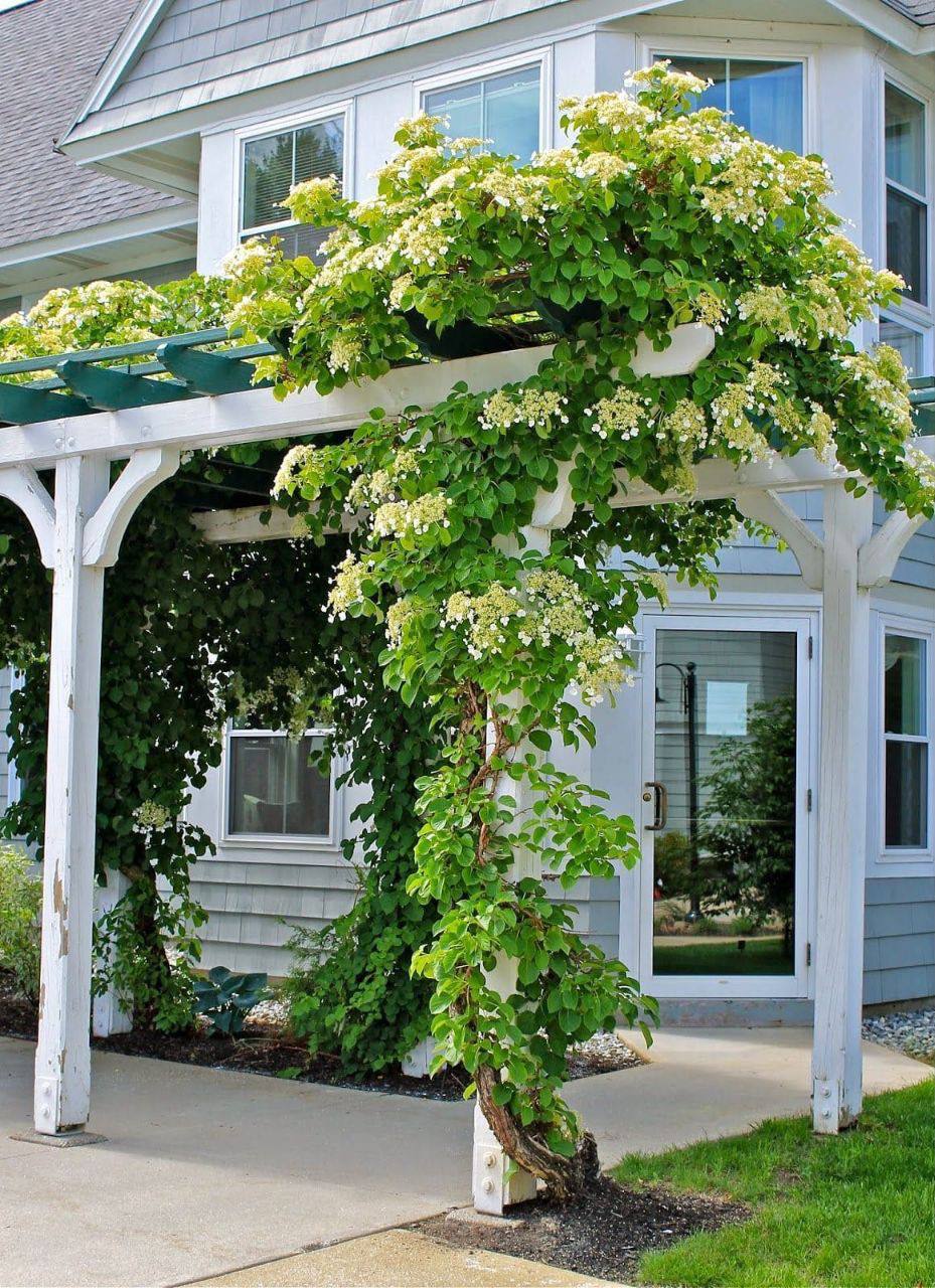 МИРАНДА, та самая вьющаяся гортензия (черешковая) или листопадная лиана, взбирающуюся по стенам, деревьям, а также стелющуюся по земле. На последнем видео можно увидеть мочалки- это воздушные корни держат гортензию на любых вертикальных поверхностях, отдираются с трудом... •Соцветия у растения белые, либо кремового оттенка, плоские. •Бутоны в метелке мелкие, до 2 см в диаметре, но очень приятно пахнущие