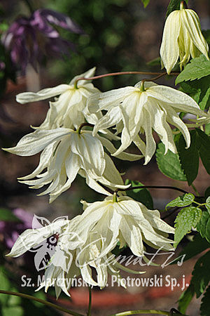 Польский сорт в продаже с лета 2012 г. Цветки всегда махровые, очень крупные для группы Атрагене (диаметром 10-12 см), светло-лимонного цвета, во время распускания бутонов – зеленоватые, а когда полностью распустятся белеют, колокольчикообразные, свешивающиеся, приятно пахнущие грейпфрутом, сидящие на пурпурных цветоножках. Тычинки с желтыми пыльниками на зеленовато-лимонных нитях и светло-желтыми пестиками. Цветет в мае и повторяет цветение, но уже менее обильно –летом. Достигает высоты 2 – 3 м. За опоры цепляется листовыми черешками. Морозостоек и неприхотлив.