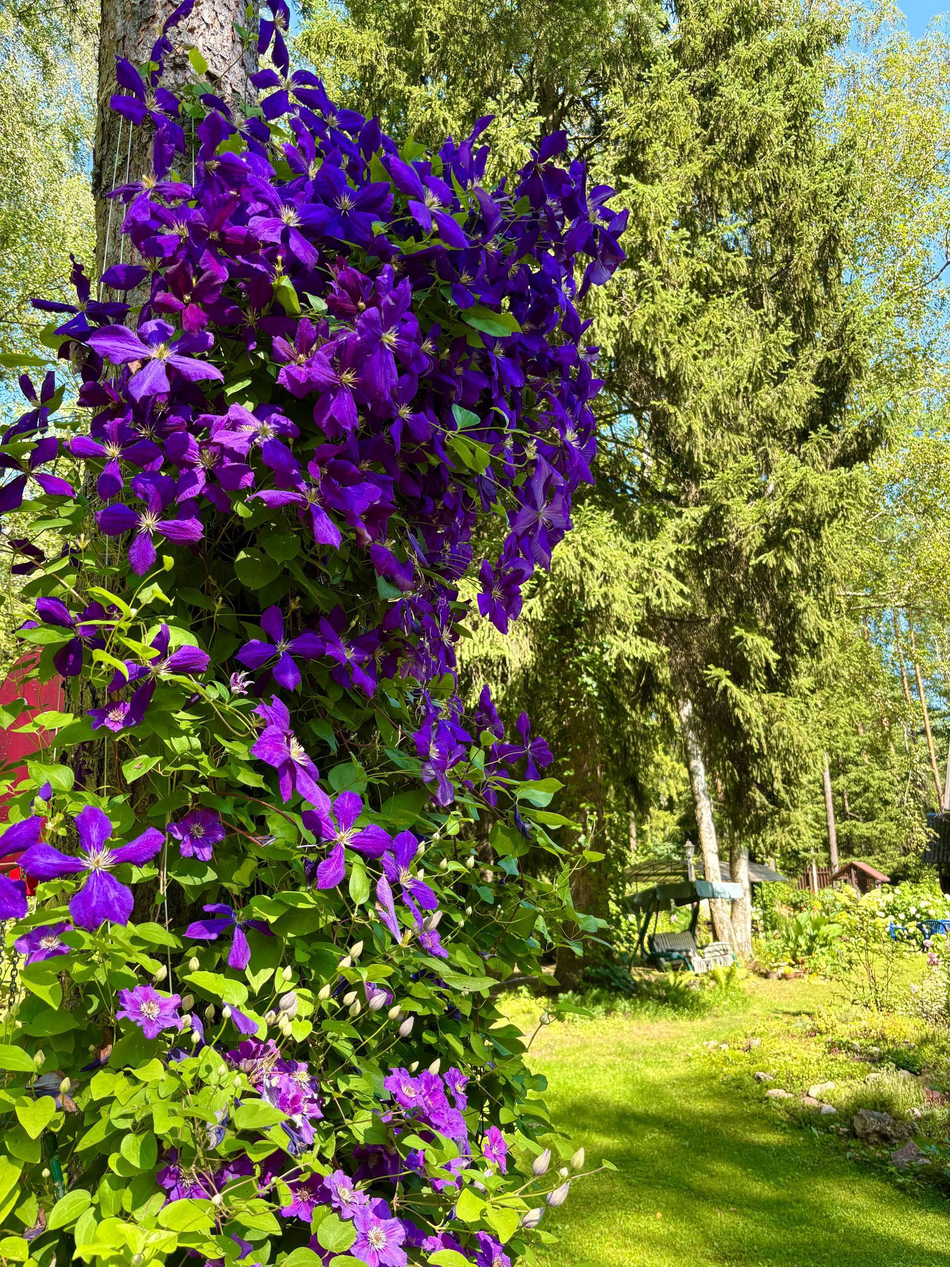 Клематис Джекмана крупноцветковый - это изысканный представитель семейства лютиковых, который привлекает внимание своими крупными и яркими цветками. Это многолетняя лиана, которая отличается энергичным ростом и способностью достигать высоты до 3-4 метров. Жизненная форма растения позволяет ему обвивать опоры, создавая живописные вертикальные акценты в саду. Клематис Жакмана не имеет шипов или колючек, что делает его безопасным и удобным для использования в ландшафтном дизайне.