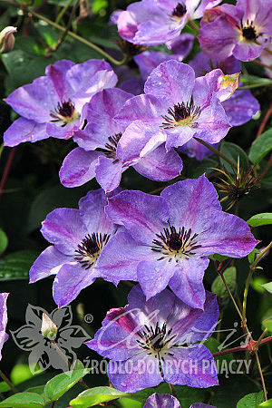 Цветки диаметром 8-10 см, светлые, розово-фиолетовые, почти круглые, со светлой серединой и розоватыми прожилками, состоят из 4-6 ромбических лепестков с заострёнными кончиками. Нижняя сторона лепестков светло-фиолетовая с бело-розовой полоской по центру. Тычинки короткие, контрастные, тычиночные нити жёлтые, пыльники тёмно-фиолетово-пурпурные, почти чёрные. Цветёт обильно с конца июня до середины августа, а иногда до конца сентября на побегах текущего года. Относительно малотребовательный и сильный сорт