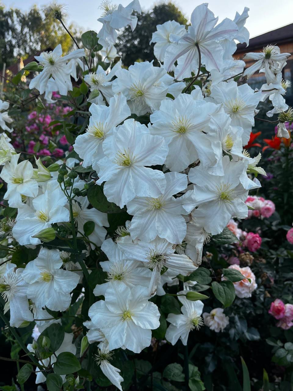 В высоту клематис Сноу Сторм достигает 200-250 сантиметров. Предпочитает яркие, прекрасно освещенные участки, с плодородными, умеренно влажными, хорошо дренированными почвами. Цветы в диаметре 10-14 сантиметров, обыкновенные, чисто-белоснежные. Они состоят из 5-6 немного волнообразных, с выраженной нервацией, чашелистиков. Тычинки имеют в своем составе светло-желтые пыльники, расположенные на белых нитях. Листва обычная, светло-зеленая, матовая, сердцевидная либо сложная тройчатая. Достоинства сорта. Особенная структура бутонов. Беспритязательное обычное растение. Вследствие собственной малогабаритности лиана запросто может культивироваться в садовых декоративных вазах и контейнерах. Абсолютно морозоустойчивый. Существенных недостатков не выявлено. Сноу Сторм отличается обильным цветением. Цветов такое количество, что может показаться, что не растаяла шапка из снега, оставшаяся еще с зимы. Белые, как снег, бутоны так блестят на солнце, что хочется прищуривать глаза. Восхищаться этим цветком можно целых три сезона. Базовое цветение выпадает на середину июня – конец июля, способно возобновиться (не столь буйное цветение) в конце сентября – начале октября.