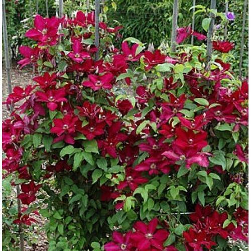 Зона зимостойкости 4 тип обрезки 2 период цветения V, VI, VII, VIII, IX Солидарность – это клематис, выведенный польским селекционером Марчиньским в 2004 году. В Польше растение называется Solidarnosc. Благодаря уникальному окрасу цветков и общему эстетичному виду культура получила награду уже через год после своего создания. Произошло это на выставке Plantarium в Голландии. Культура многолетняя, достаточно компактная, в высоту вырастает до полутора метров. Побеги гибкие и прочные, стебель вьющийся. Молоденькие стебли имеют светлый зеленый тон, потом приобретают древесную структуру. Растет культура медленно, первого цветения можно дождаться только на пятый год. Красный оттенок цветов красиво сочетается со светло-зеленой листвой. Форма у листовых пластин сложная. Корни Солидарности отличаются мочковатой конфигурацией, поэтому допустима частая пересадка полукустарников. Это позволяет своевременно обновлять и почву, и дизайн сада. Клематис Солидарность пользуется популярностью чуть менее двух десятков лет. Востребованность именно этого сорта обусловлена следующими плюсами: многолетнее комфортное существование; бархатистые яркие цветы; возможность вертикального озеленения, а также выращивания в контейнере, на балконе и улице; хорошая холодостойкость; ранний старт цветения. Вьющаяся культура также легка в уходе, но два минуса все-таки у нее можно найти. Это необходимость зимнего укрытия и невозможность правильного роста без опоры. Клематис цветет красивыми бархатистыми цветками. Это крупные экземпляры диаметром в 16 сантиметров и с 6 лепестками. Лепестки овальные, продолговатые, махровость на них отсутствует. Окрашены в ярко-красный тон, однако посередине каждого лепестка имеется светлая полоска. В центре также иногда присутствует светлая россыпь пятнышек. Тычинки бело-розовые, а пыльники пурпурные. Располагаются они на светлых желтых ниточках, которые образуют полукруг. Солидарность принадлежит к цветочной группе раннего цветения. Кусты почти беспрерывно формируют цветки, период отдыха краткий. В основном процесс длится с мая по сентябрь, на юге может цвести и дольше, если позволяет погода. В начале лета цветы формируются на прошлогодних побегах, а в конце – на представителях текущего сезона. Это важно учитывать при планировании обрезки куста.