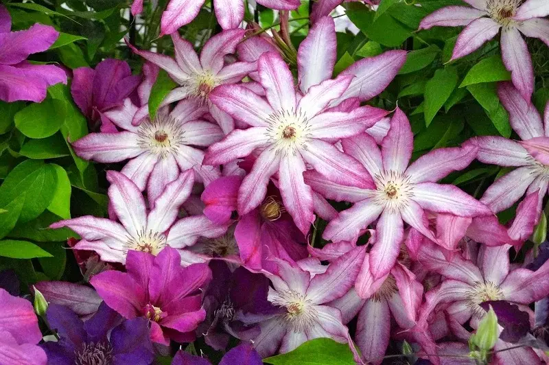 Зона зимостойкости 4-9 Тип обрезки 2 (слабая) период цветения 5,6,8,9 Размер цветка 15-20 см Клематис «Тае» (Clematis Tae) — японский сорт.Цветы: крупные, диаметром 15–20 см, состоят из 8 узко-эллиптических лепестков с острыми кончиками и неровными краями. Лепестки белые, по краям розово-красные. Цветение: во второй половине мая и в июне, а затем вторично, но менее обильно, в августе-сентябре. Высота: 2–2,5 м. Цепляется за опоры черешками листьев. Условия выращивания: лучше всего растение будет расти и развиваться на солнечном месте. Для расположения подойдёт юго-западная или юго-восточная часть участка. Клематис «Тае» можно успешно выращивать в садовых контейнерах. В саду лиана помогает украсить деревья и кустарники, хорошо плетётся по стенам, решёткам, сеткам и беседкам |
