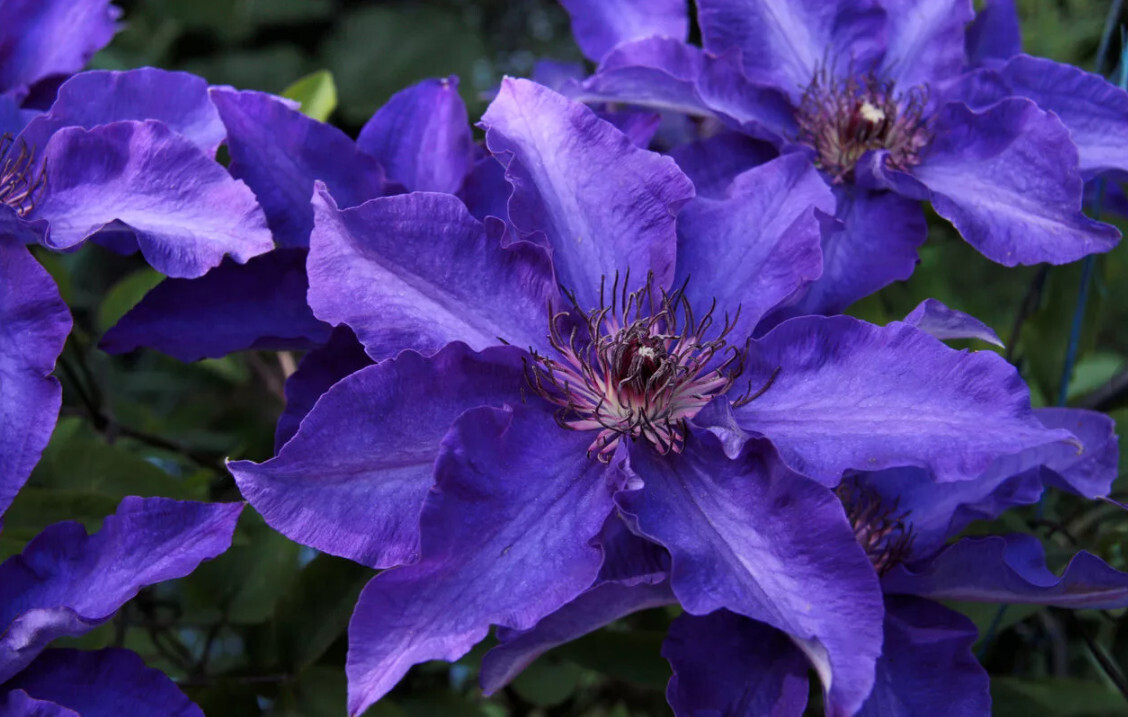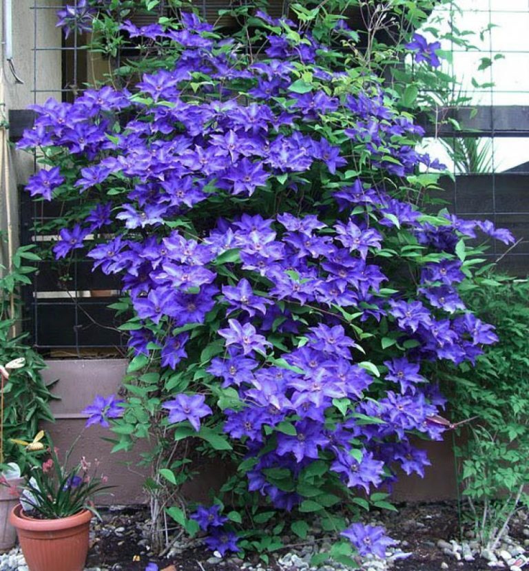 Клематис Президент выведен в 1876 г в Великобритании, и получил свое название в честь президента Британского Королевского Садоводческого Общества. Яркие и крупные цветы переливчатой, сложной окраски, напоминающие по форме звезды, станут главным украшением Вашего сада! Клематис The President – вьющаяся кустарниковая лиана семейства Лютиковые, высотой около 2 м, шириной около 1 м. За один день вырастает на 5–10 см. За сезон образуется до 5 новых гибких, но довольно хрупких побегов, ярко–зеленого цвета. Весной их нужно подвязывать, окрепнув, они сами карабкаются по опорам. Цветет на побегах прошлого и на побегах текущего года. На одном месте живет до 30 лет. У клематиса Президент листья овальной формы, длиной 10–15 см, темно–зеленые. Цветы необычной окраски – края лепестков насыщенного темно–фиолетового цвета, а середина светлее, может быть даже голубой, по центру лепестка проходит серебристая полоса. Светлые пыльники с темно–красными кончиками делают цветок особенно выразительным. Форма цветка напоминает звезду с 8 лучами–лепестками до 15 см в диаметре. Лепестки вытянутые, с волнистыми краями, заостренные на концах. Цветение с мая по сентябрь.