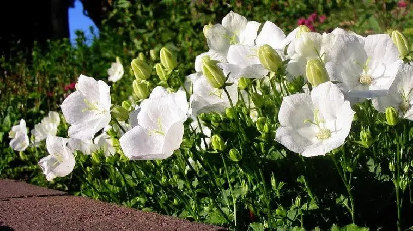 Колокольчик карпатский «Перл Вайт» — компактный кустик высотой и диаметром около 30 см, почти идеальной полусферической формы. Это многолетнее травянистое растение — один из самых длительно цветущих видов низкорослых колокольчиков. Цветёт с июня 60–70 дней множеством одиночных, воронковидно-колокольчатых, белых цветков до 5–6 см в диаметре. Листья зелёного цвета сердцевидной формы. Подходит для бордюров, рокариев, а также для переднего плана миксбордеров. Из-за своей компактности хорошо растёт в горшочках или контейнерах. Предпочитает солнечные участки и плодородный хорошо дренированный грунт. Хорошо переносит полутень. Зона морозостойкости (зимостойкость) — 4 (до -34С)