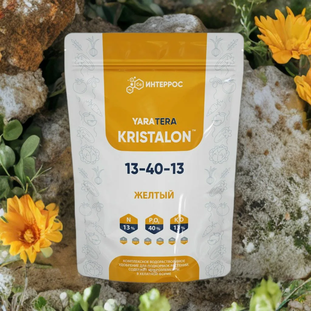 Комплексное водорастворимое удобрение YaraTera KRISTALON 13-40-13 Yellow. Применяется в начале развития растений, для стимуляции роста корневой системы. Для холодных и влажных почв.