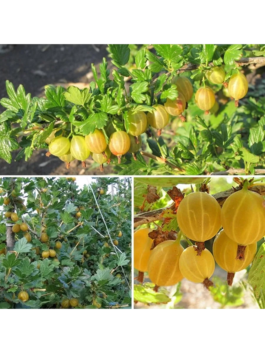 - Ягоды: овальные, янтарно-жёлтые с выраженными прожилками. Кожица тонкая и блестящая, без пушков. Средняя масса ягод — 2,7 г.