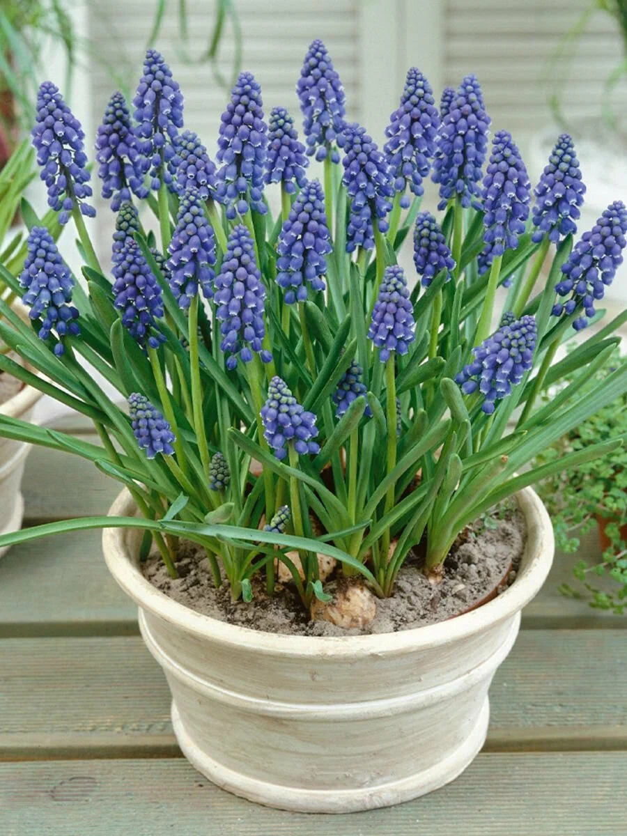 Высота растения - около 20 см, цветки ярко-голубые с белыми зубчиками, собраны по 30-50 штук в овальные соцветия 5-8 см длиной. Верхние цветки в соцветии стерильные, более светлые. Имеют 4-7 листьев, которые появляются осенью, а отмирают летом следующего года. Цветет в первой половине мая на протяжении 20-25 дней.