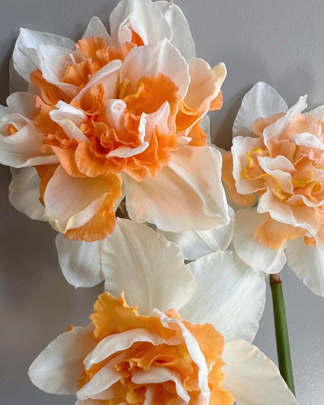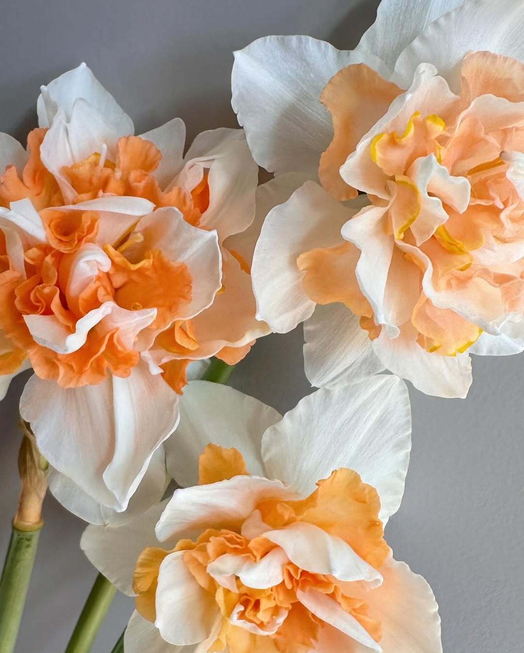 Сорт выделяется удивительно красивыми крупными густомахровыми цветками. Стебель крепкий, прямостоячий. Цветок имеет белые лепестки и гофрированную розово-абрикосовую коронку. Окраска может меняться в зависимости от погоды – от розового до персикового. Часто имеет коралловые вкрапления. В высоту достигает 40 см. Диаметр луковицы составляет 3-4 см. Сорт раннецветущий, неприхотливый. Популярен в декоративном садоводстве. Подходит для выгонки и горшочного выращивания.