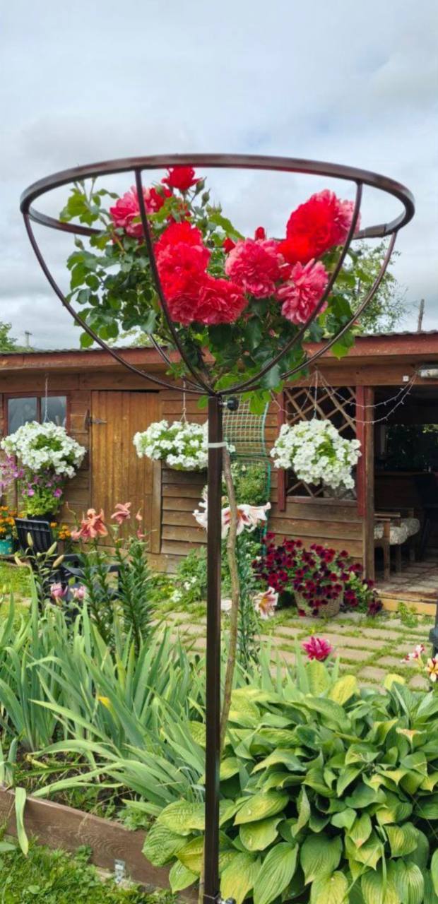 Опора для штамба Высота штамба от 80 до 170 см Диаметр 70 см , глубина 40 Окраска порошковая - цвет коричневый Состоит из трех частей. Высота регулируется Чаша разъемная