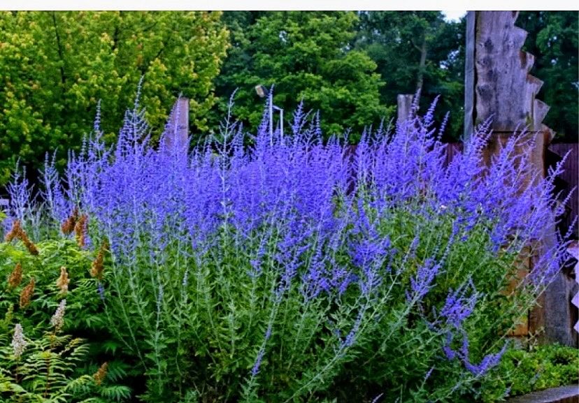 Многолетнее очаровательное растение в своей скромной природной красоте выглядит гармонично в композициях ландшафтного дизайна, в одиночных и групповых посадках с другими растениями. Стебли растения ветвистые до 1 м высотой, листочки резные с серебристым отливом имеют тонкий аромат схожий с ароматом шалфея. Мелкие лавандово-голубые цветочки собраны в соцветия длиной до 30 см. Цветение продолжительное и обильное с июля до октября. Растение выносливое морозо-засухоустойчивое. Предпочитает защищенные от ветра солнечные участки с сухой, дренированной почвой с нейтральной до щелочной реакцией почвы. В регионах где холодные и малоснежные зимы растению требуется укрытие на зиму. Нуждается в обрезке побегов, поливах и рыхлении почвы. Посев проводят в открытый апреле или начале мая или под зиму в бороздки на глубину от 2 до 3 см. Расстояние между рядками — 70 см.
