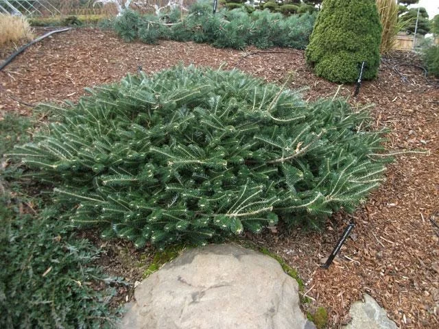 - Размер взрослого растения (в 25–30 лет) — до 40 см в высоту и 1,5 м в ширину. В 10 лет — невысокая пихта диаметром около полуметра.
