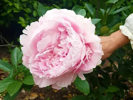 Кусты имеют прямостоячие стебли с умеренным ветвлением и светло-зеленые листья. Цветки крупные, диаметром от 20 до 25 см, нежно-розового цвета, с пышной розовидной формой. Они обладают пьянящим ароматом и выглядят очень изысканно.