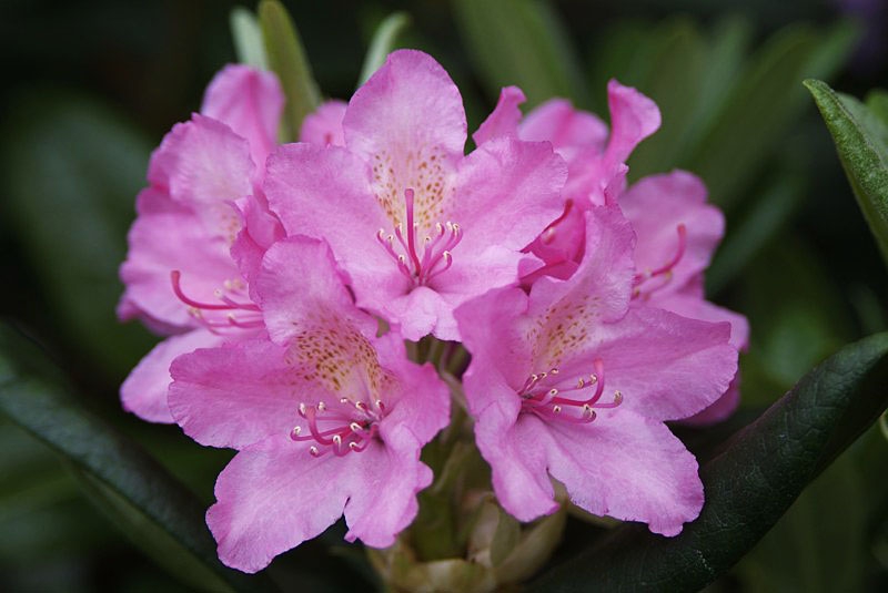 Рододендрон Гаага — это вечнозеленый, плотный, быстрорастущий кустарник. Его округлая крона прирастает в год на 8–10см, и достигает в высоту и в ширину до 1,5м. У рододендрона Haaga листья простые, глянцевые, до 15см длиной, насыщенно–зеленого цвета. Цветение наступает одновременно с появлением листьев, с середины мая. Цветки лилово–розовые, с красноватыми веснушками, воронкообразные с волнистыми краями, до 6–7см в диаметре, без запаха. Соцветия расположены на концах ветвей, несут 17–20 цветков. Цветение обильное, в мае, в течение трех недель.