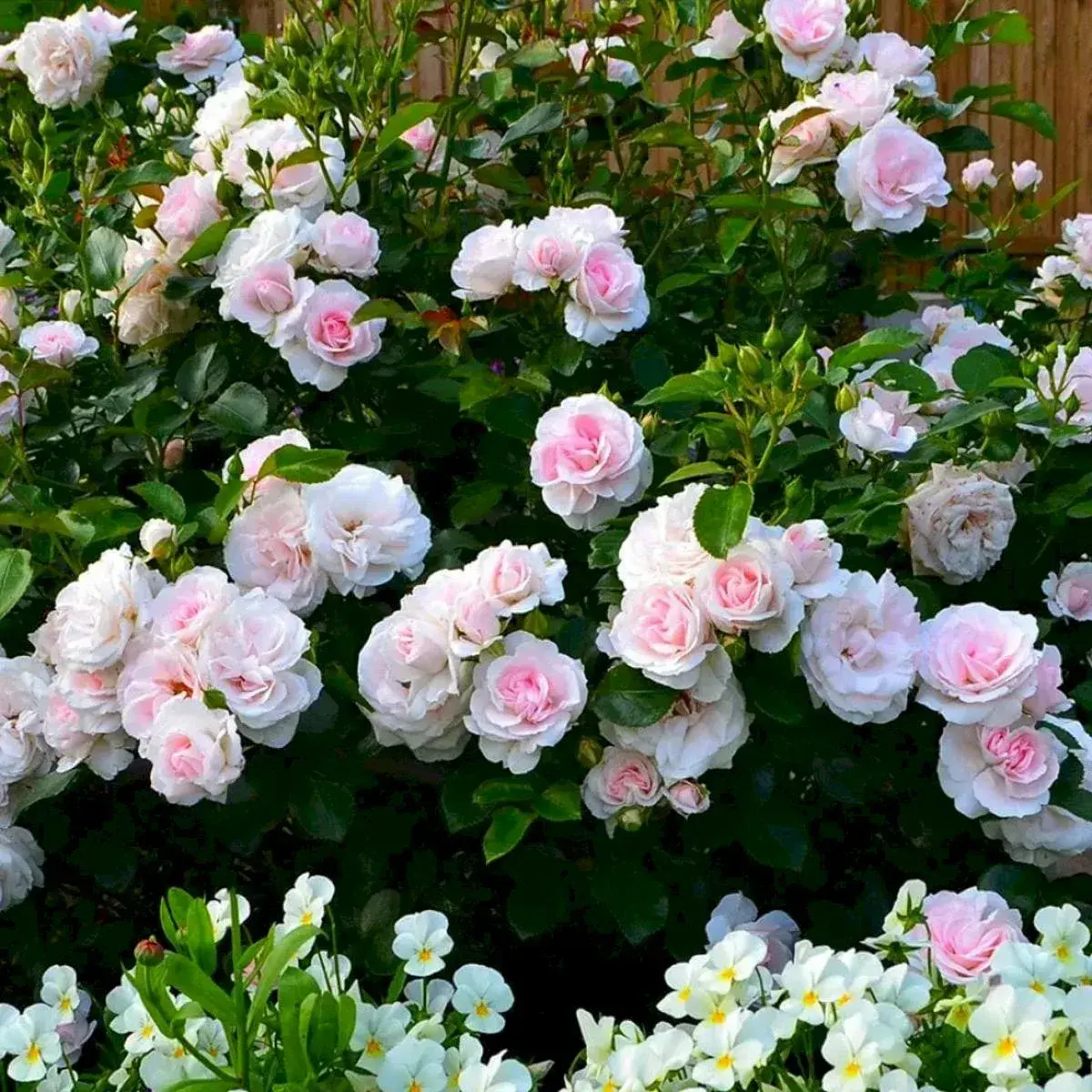 Здоровая и благодарная на уход розочка. Куст хорошей формы, густой, иногда больше в ширину, чем в высоту. Высота 60 - 70 см, размер куста 60 х 40 см. Эта роза рекордсменка по цветению и морозоустойчивости, а так же устойчивости к болезням. Лист зеленый, средний, глянцевый. Цветет очень обильно и практически непрерывно до поздней осени. Форма цветка элегантная, чашевидная, махровая, 50 - 60 лепестков в одном цветке, диаметр цветка 6 см, цветы переносят даже ливневый дождь. Изменение оттенка цветка в зависимости от температуры - интересная особенность этой розочки. В жаркую погоду она белоснежная, а когда становится прохладно - цветы распускаются нежно-розовые. Они появляются в огромном количестве в кистях по 2-15 шт, так что весь куст покрыт цветами. Цветы держатся очень долго. Форма куста позволяет использовать ее и как флорибунд .Обладает лёгким ароматом, сорт чрезвычайно надежен и нетребователен к уходу.