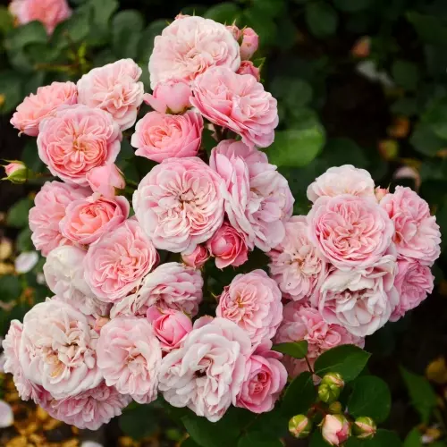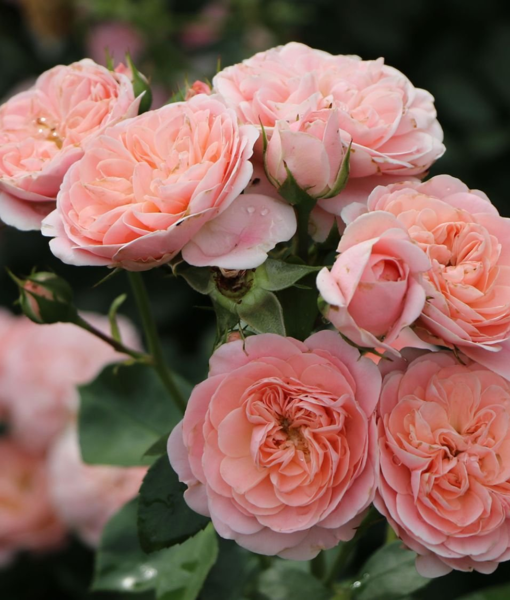 Отличительными чертами растения считаются выраженный глянец листвы, их плотность, а также небольшая шипованность побегами, облегчающая процедуру ухода и среза. На каждом стебле формируется 8−10 цветков, собранных в соцветия. Благодаря стремительному росту боковых побегов растение выглядит объемно — диаметр 60−70 см.