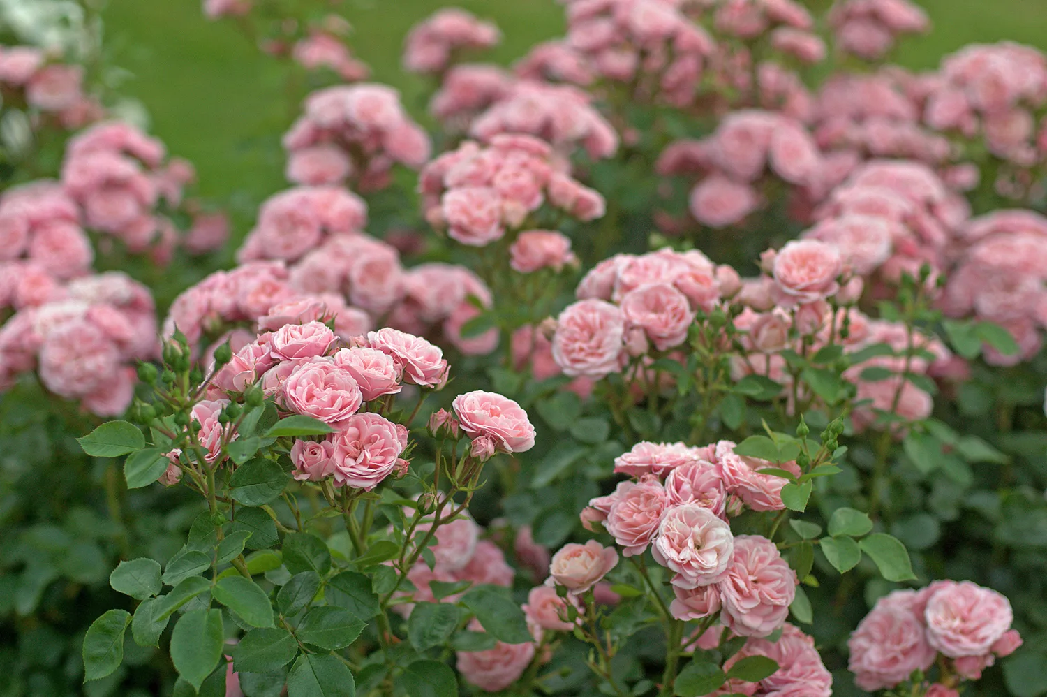 Розовая разновидность представляет собой сильнорослый кустарник с прямостоячими побегами. В благоприятной среде розовый куст вырастает в высоту до 70−90 см. Характеризуется растение хорошей ветвистостью, крепкими побегами, обильной облиственностью ярко-зелеными удлиненными листочками небольшого размера, а также развитым корневищем, уходящим глубоко в грунт.