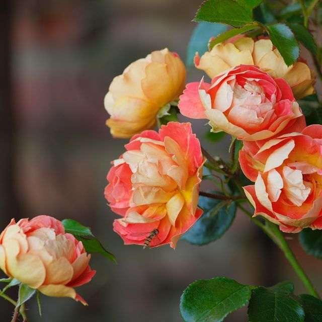 Роза Биненвайде Манго миниатюрная, Тантау (лиц) - желто-оранжевые, отличаются длительной закрытой формой цветка, благодаря которой ярко-желтая обратная часть лепестков остается видимой длительное время; постепенно цветки раскрываются, показывая оранжевый наружный цвет лепестков. Цветки полумахровые и махровые (9-16 лепестков), диаметром 2-4 см, собраны в небольшие соцветия, самоочищаются, с приятным средней силы ароматом. Цветение повторное. Кусты очень компактные, высотой 40-60 см и шириной 45-50 см. Листва тёмно-зелёная блестящая, высокоустойчивая к чёрной пятнистости и мучнистой росе. Может использоваться для посадки небольшими группами, на террасах, в горшках, границах клумб.