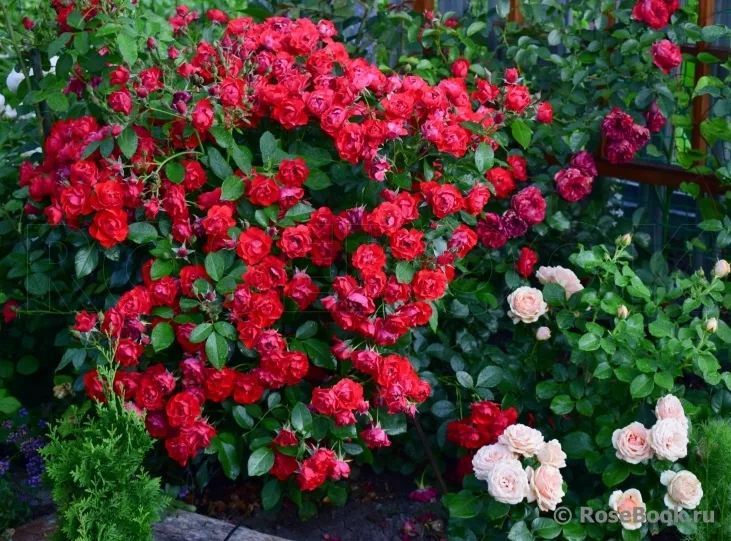 Роза Блэк Форест Роуз флорибунда, Кордес (лиц) - группа флорибунда. Высота 1,1 м, куст легко формируется. Цветки ярко-красные, 6 см, форма классическая, махровая, лепестки с легкой волной, цветение одиночное и кистями, повторноцветущая, аромата нет. Листва крупная, зеленая, полуглянцевая. Обильноцветущий сорт. Зона зимостойкости 6.