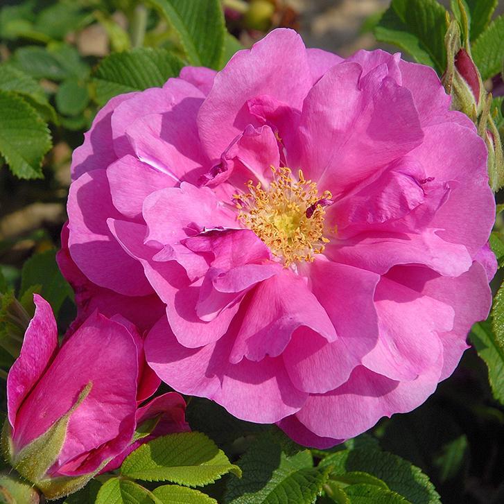 Девид Томпсон David Thompson - довольно популярный сорт канадской розы благодаря своей очень высокой зимостойкости. Уступает в декоративности другим сортам, но обладает своим очарованием. Цветки у этой розы пурпурно-розовые с бледно-желтыми тычинками. Форма цветков чашевидная. Цветки полумахровые, собраны в кисти по 3-7 штук. Для посадки лучше выбирать возвышенности, хорошо освещенные места, защищенные от ветров. В теплом климате можно сажать в полутени. Уход за розой заключается в поливе, рыхлении, подкормке и обрезке. Хорошо смотрится в парковых ансамблях, особенно если правильно подобрать другие сорта по размерам и цветовой гамме.