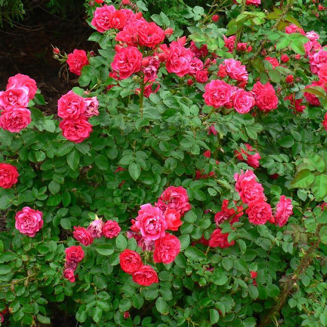 Роза Джордж Ванкувер канадская парковая (лиц) - очень устойчивая к заболеваниям, обильно цветущая красная роза. Компактная роза Джордж Ванкувер образует прямостоячий куст высотой 90-100 см. Цветение розы обильное повторное, на одном цветоносе насчитывается 1-7 цветков. Бутон розы George Vancouver темно-красный. Цветок красный выгорает до розового в полном роспуске, полумахровый, диаметр 5 - 6 см. Лист темно-зеленый, блестящий. Побеги темно-красные. Устойчивость к заболеваниям высокая, очень морозостойкий сорт. Легко черенкуется.
