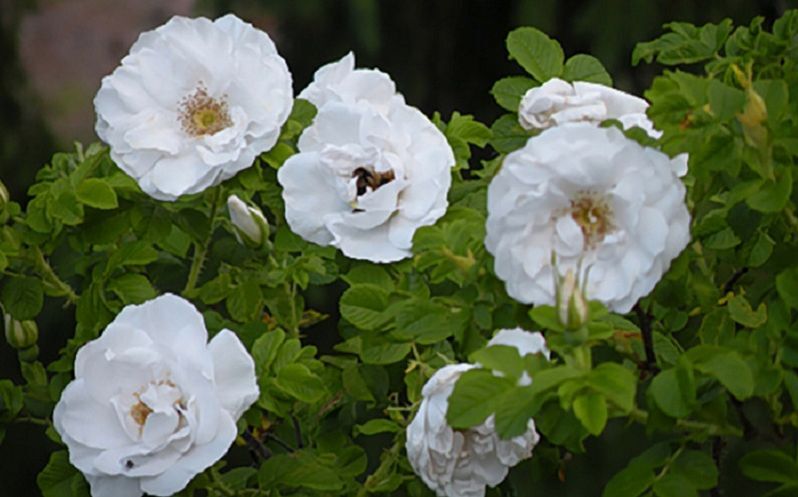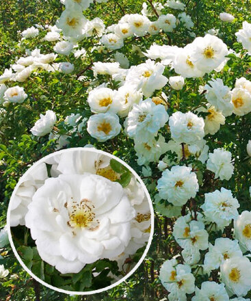 Роза канадская Каква была выведена канадским селекционером в 1973 году. Отличительной чертой является высокозимостойкость данного сорта. Куст данного сорта компактный, высотой до 120 см. Прямостоячий, хорошо держит форму. Большое количество темно-зеленой листвы, шипы длинные и острые. Цветы полумахровые, диаметром 5-7 см. Нежного кремово-белого оттенка с желтыми тычинками в центре. Но если посмотреть на цветы вблизи, то можно заменить слегка уловимый розоватый оттенок. Обладают сильным ароматом. Высаживать лучше саженцы на открытом солнечном месте, но и в полутени они будут хорошо себя чувствовать. Сажать саженцы роз с закрытой корневой системой можно весной, летом и осенью. Летом самое главное выбрать прохладный или дождливый день, а осенью успеть посадить саженцы за три недели до предстоящих заморозков. Обладает хорошей морозоустойчивостью, до -34 градусов, что позволяет высаживать их по всей территории России. Отлично адаптируется при посадке, имеет хороший иммунитет к вредителям и заболеваниям. Цвести данный сорт начинает достаточно рано, уже в июне можно любоваться необычной красотой нежных белых цветов. Прекрасно смотрится как одиночное растение, так и в композициях с другими цветами. Отлично подходит для украшения вашего сада, розария или клумбы. После того, как куст отцветет, появляются маленькие плоды черного цвета. Благодаря яркой окраске листьев и плодов, даже осенью будут радовать вас своей необычной красотой и нежностью. Канадскую розу Каква вы всегда можете найти в нашем интернет-магазине по самой привлекательной цене.