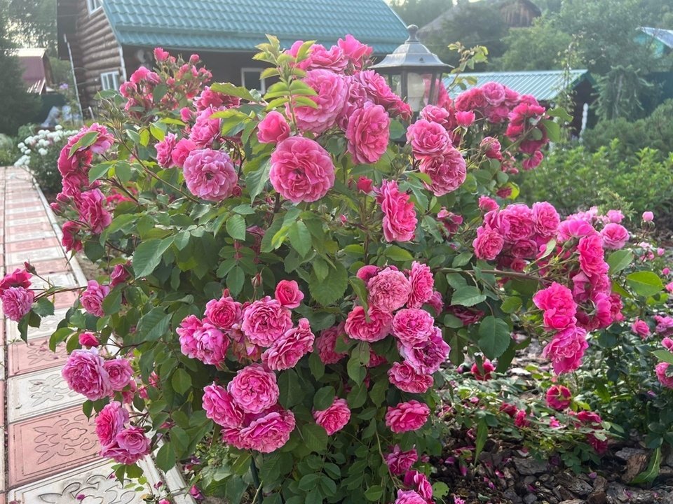 оза Морден Руби канадская парковая (лиц). На цветущем кусте всегда много соцветий, в которых могут встречаться как густомахровые, так и немахровые розочки. Издали окрас цветков кажется однотонным и ровным, но если рассматривать их вблизи, то можно заметить на лепестках невероятное количество крохотных точек более яркого оттенка. Цветки появляются в кистях по 5-10 шт., на длинных изящных стеблях, и долго держатся как на кусте, так и в срезке. Листья блестящие, темно-зеленые, устойчивы к заболеваниям, но во влажных условиях возможно появление черной пятнистости. Хорошо цветет повторно, с появлением одиночных цветков между волнами.