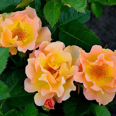 Роза Морден Санрайз канадская парковая (лиц) - очень устойчивая к заболеваниям, повторноцветущая желтая роза. На компактном прямостоячем кусте розы Morden Sunrice постоянно распускаются все новые и новые полумахровые цветки с ярким запоминающимся окрасом. Цветки ароматные, желто-оранжевые или желтые. В холодную погоду проявляются розовые оттенки. Цветки появляются в кистях по 4-8 шт. Листва очень привлекательная, темно-зеленая, блестящая. Это дополняется хорошей устойчивостью к черной пятнистости, мучнистой росе и ржавчине.