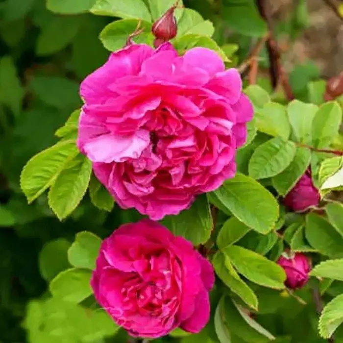 Роза Рут канадская парковая к/с (лиц) - относится к группе парковых роз. Куст формируется легко, высота 1,8 м. Цветки темно-розовые, 8 см, лепестки волнистые, форма соцветия полумахровая, классическая, цветение кистями и одиночное, повторноцветущая, присутствует приятный легкий аромат. Листва зеленая, глянцевая, крупная. Зона 3.