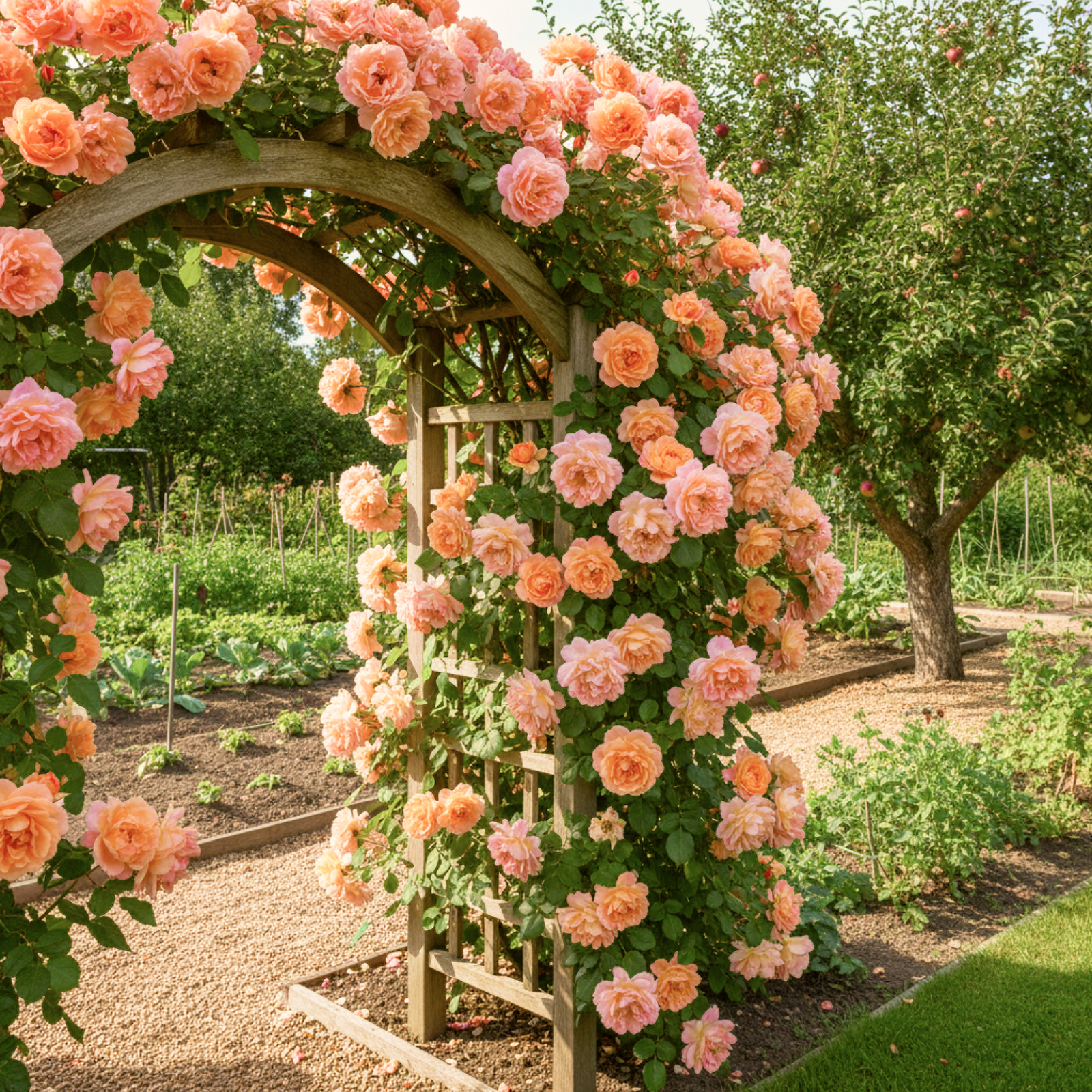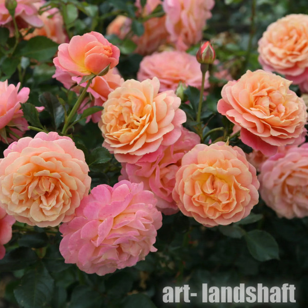Peach Melba – роза, воплощающая в себе неповторимую элегантность и изысканность. Её густо-махровые чашевидные цветки обладают уникальной красотой, проявляя признаки квартированности, что делает их поистине удивительными. Куст этого сорта великолепно разветвлен, с блестящей, темно-зеленой листвой, создавая великолепный контраст с прекрасными цветками.